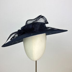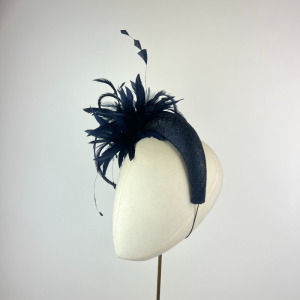Navy Blue Oval Brim Hat with Large Feather Explosion