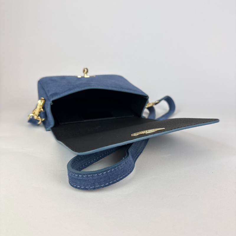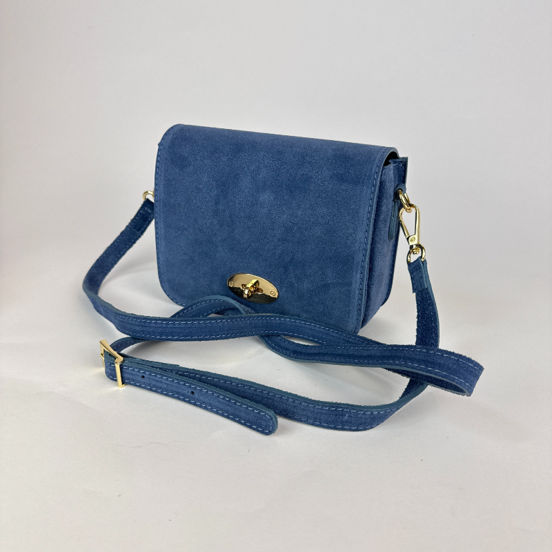 Italian Genuine Suede Crossbody Bag with Metal Clasp