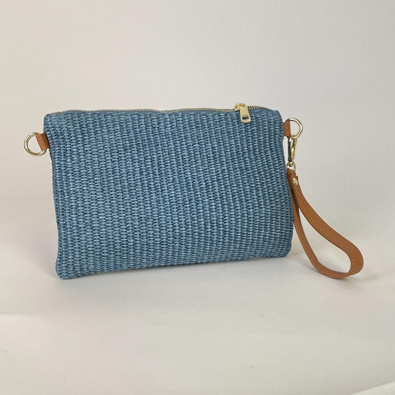 Sky blue straw clutch bag, wristlet or crossbody bagSky Blue Straw Clutch