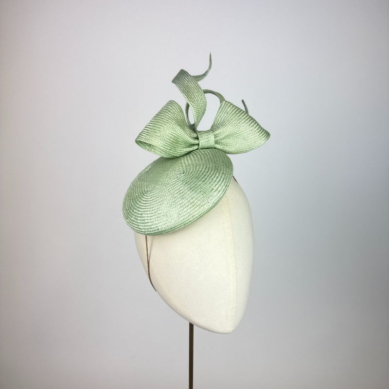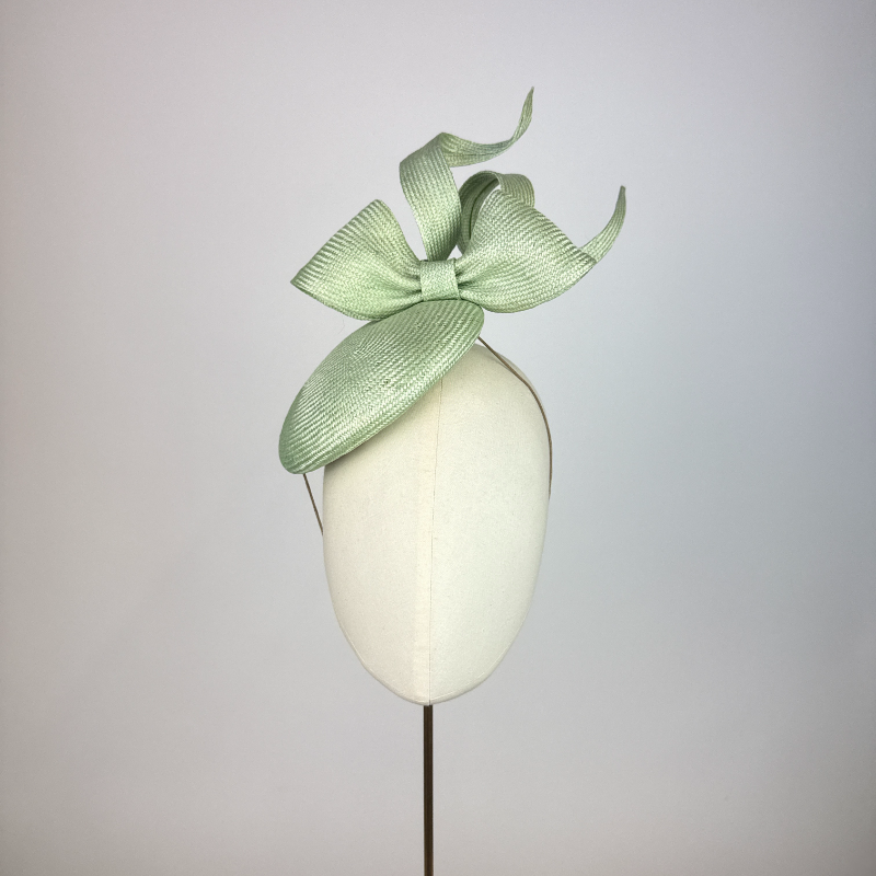 Apple green parasisal straw small beret with sculptural parasisal straw bow trim