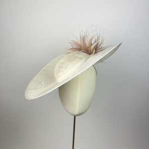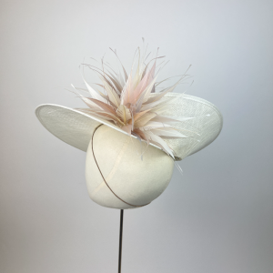 Ivory and blush pink twisted saucer hat, mother of the bride wedding styleIvory and Neutral Tones Split Brim Hat