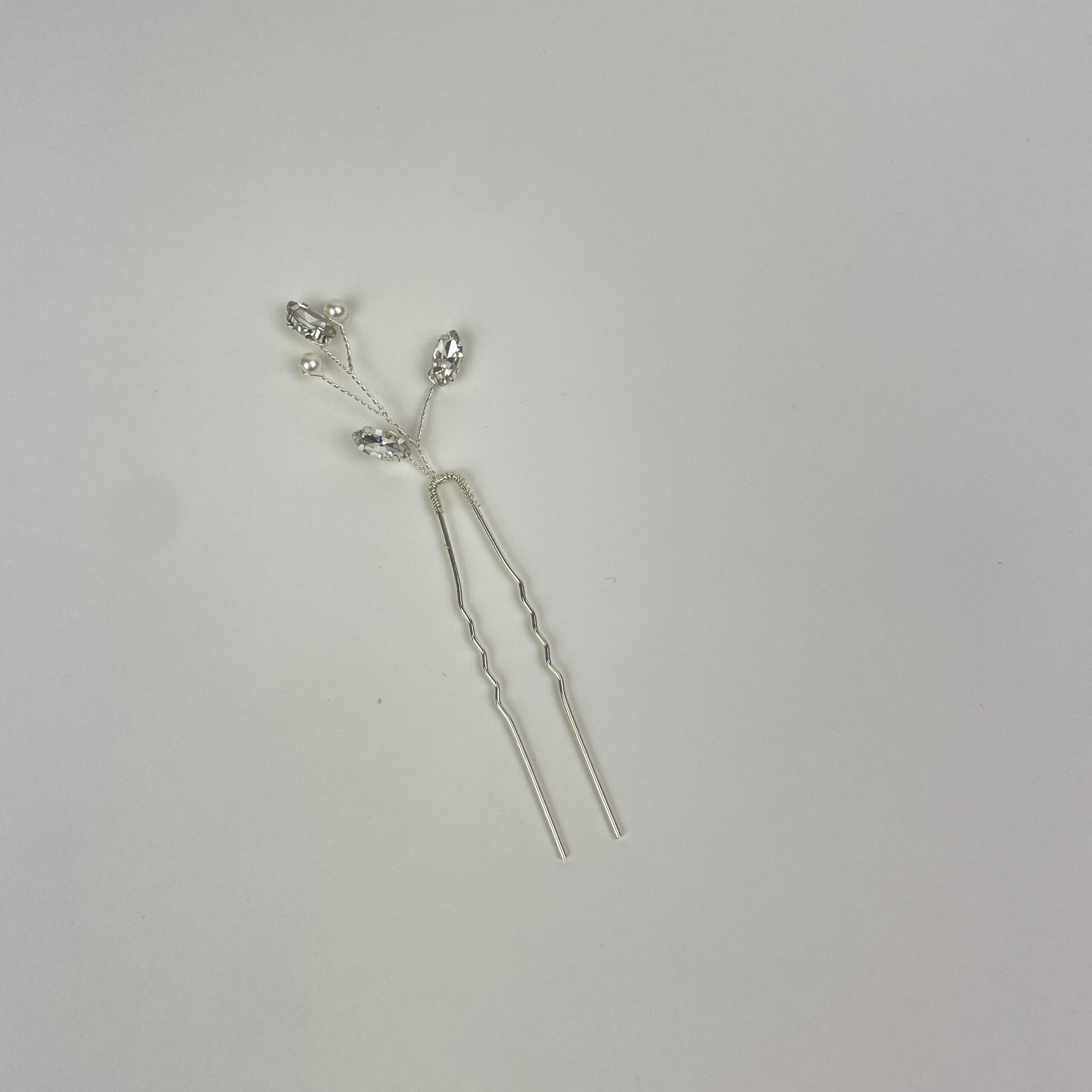 Delicate silver hair pin with ivory pearls and Silver crystals with the ability to shape wires to any shape