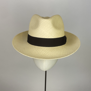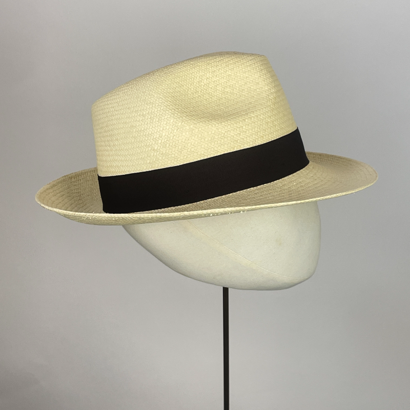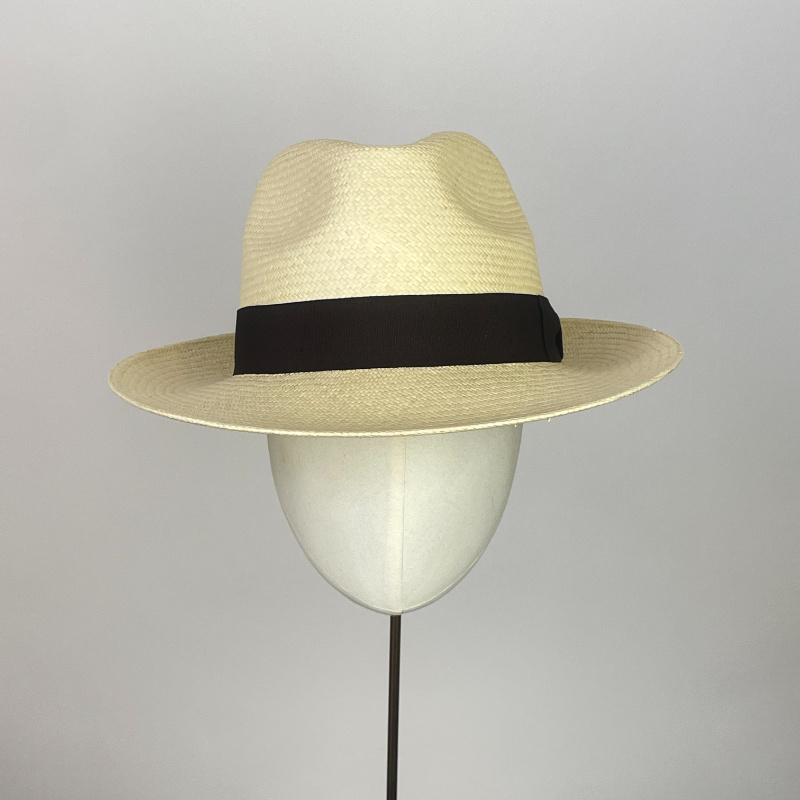 Genuine Panama, woven in Equador and blocked and trimmed into a classic fedora shape