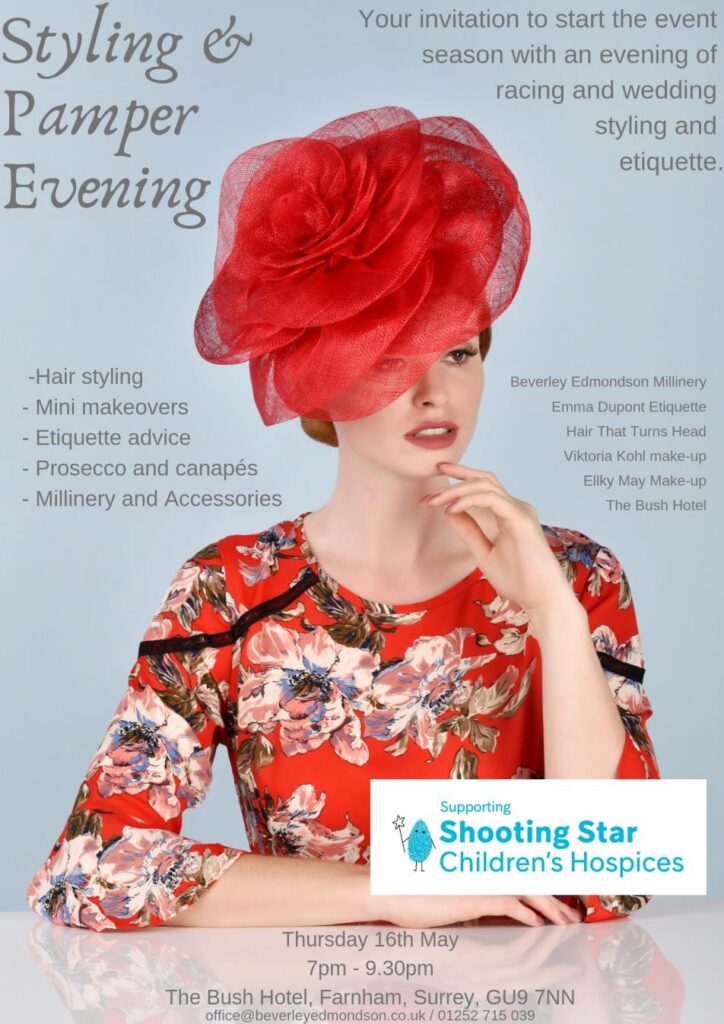 Join us for an evening of canapes and prosecco, hair, make-up, styling and etiquette tips to welcome in the start of the racing or wedding season as well as raising money for Shooting Star children’s hospice https://www.shootingstar.org.uk/